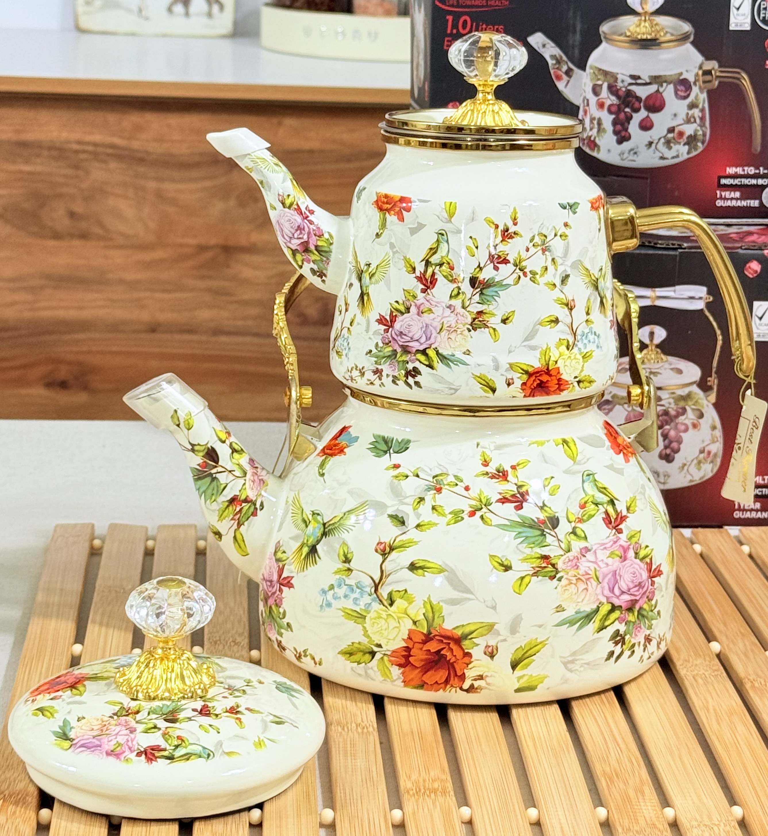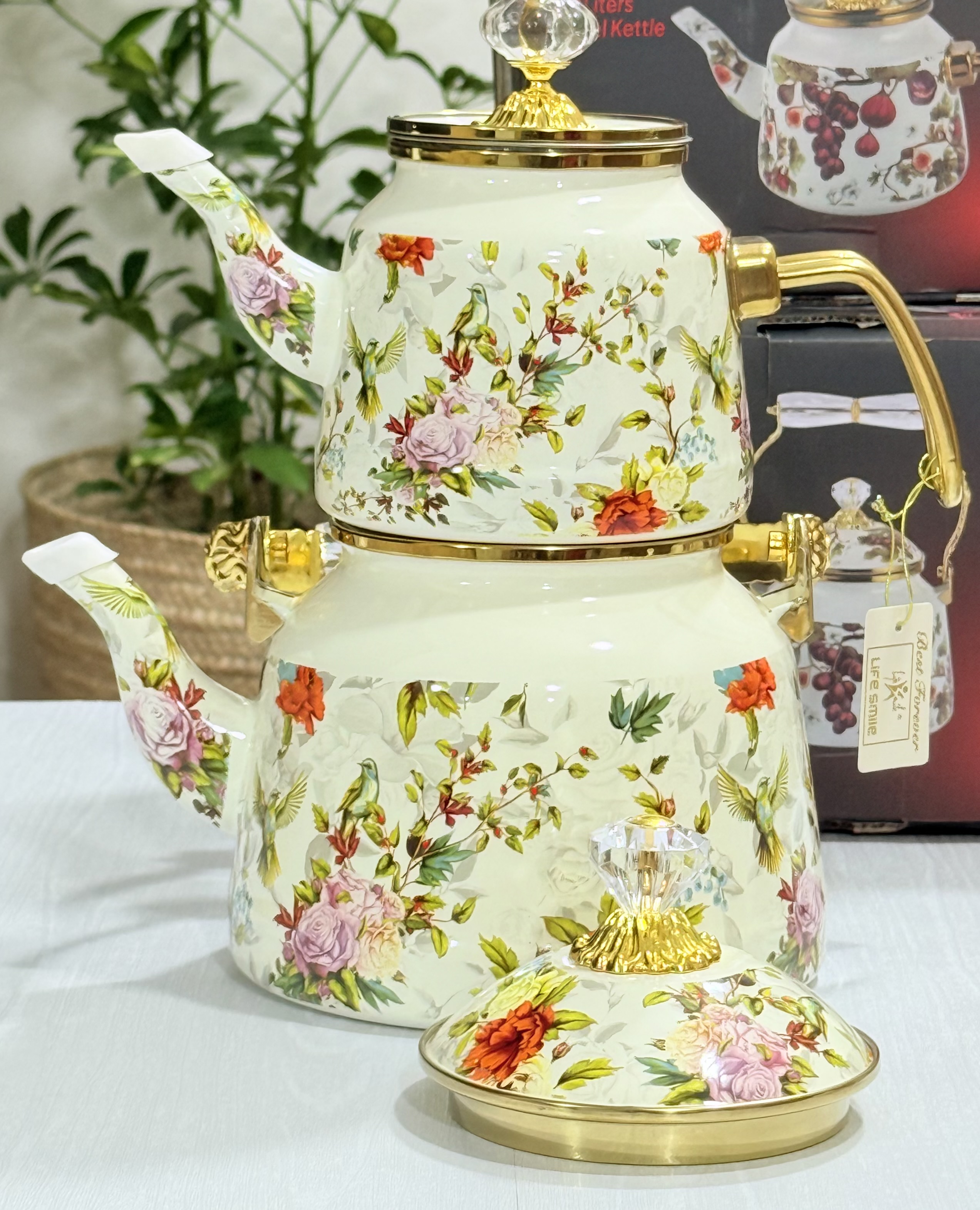 کتری درب کامل لعاب حجم ۲/۸ لیتر / قوری حجم ۱ لیتر